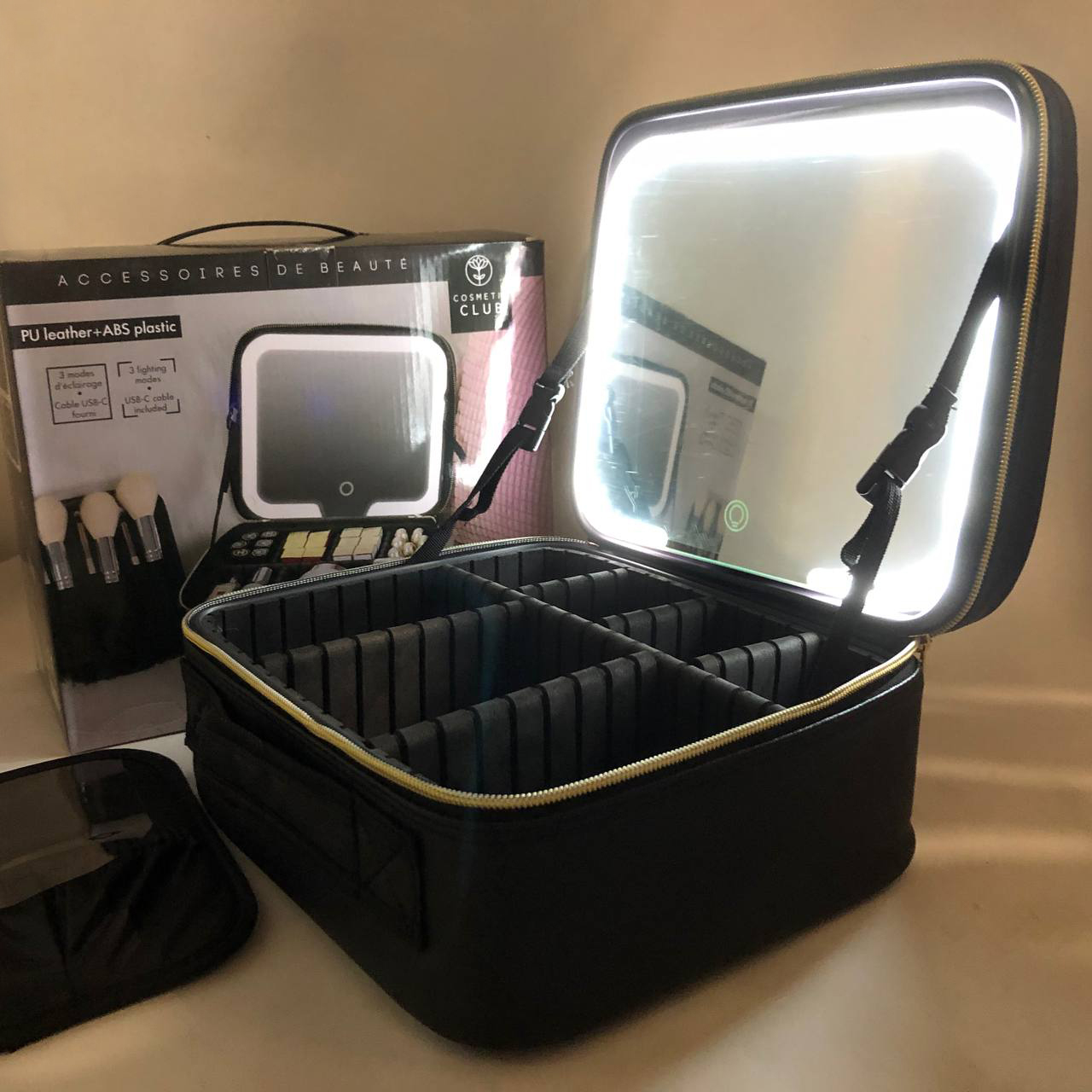 💎 Що робить цю косметичку по-справжньому унікальною, так це вбудоване світлодіодне освітлення з 3 режимами. Завдяки цій інноваційній деталі, ви завжди матимете ідеальне освітлення для макіяжу, навіть в умовах нестачі світла.